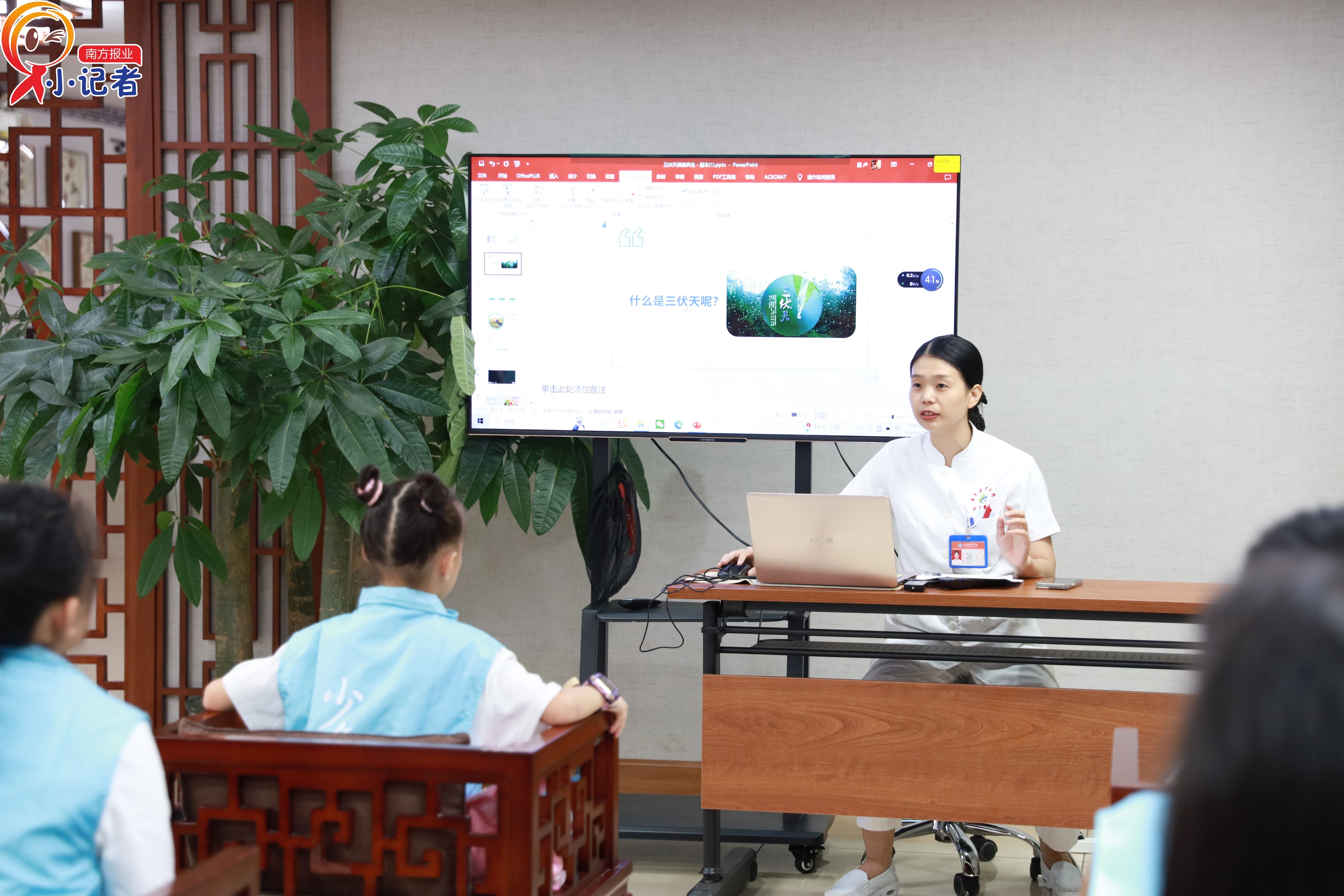 广东省第二东谈主民病院东莞病院(东莞市寮步病院)国医堂卢璐博士以“传承国医 作念中国好少年”为主题为小记者们开启中医肄业之门,教导小记者们沿途学习中医的发源和发展、中医的基本表面,了解中医养生表面,包括饮食养生、畅通养生等本色,以及常见疾病的中医调养行径。