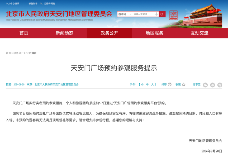 9月20日欧洲杯正规(买球)下单平台·中国官方全站,天安门地区处分委员会发布《天安门广场预约参不雅做事教导》: